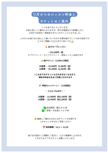 11月からのレッスン料金一部変更についてのおしらせ